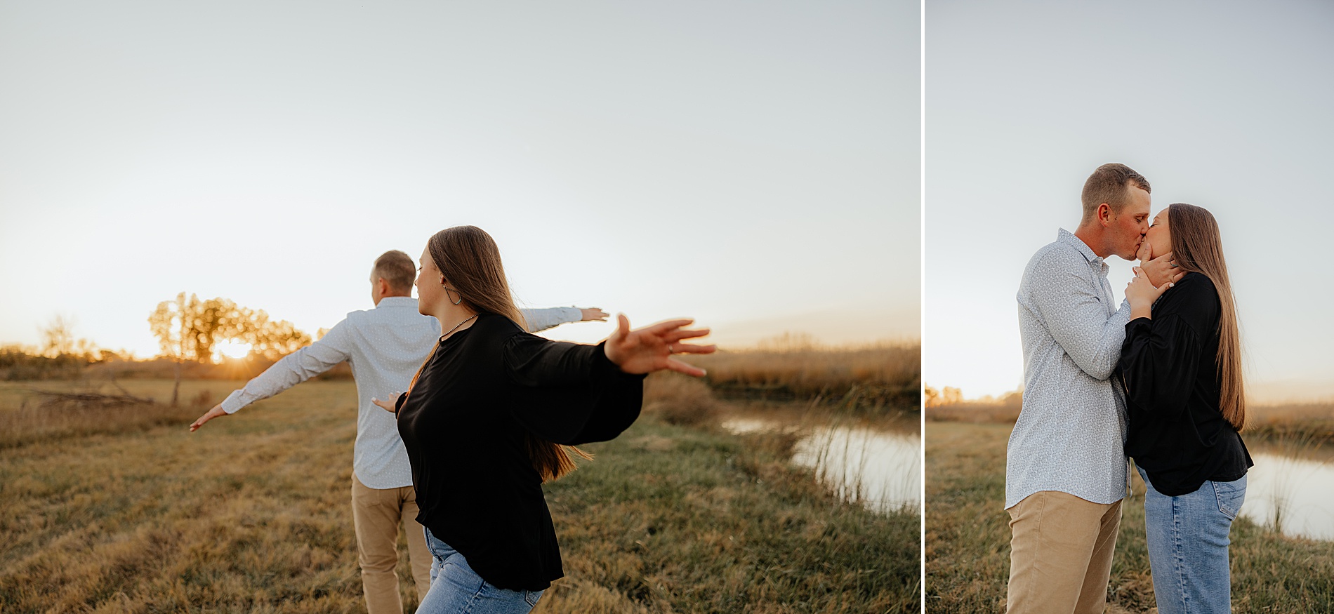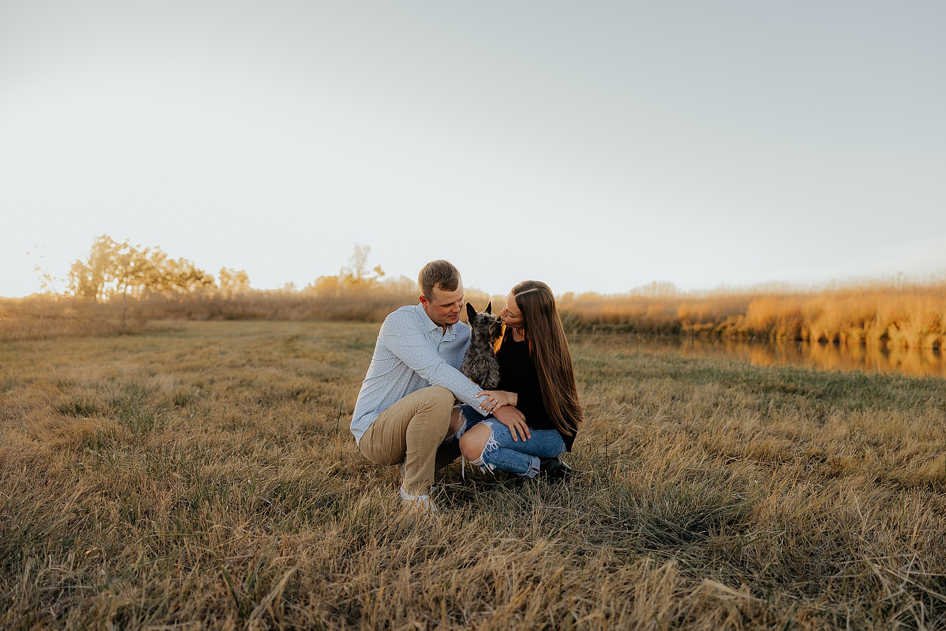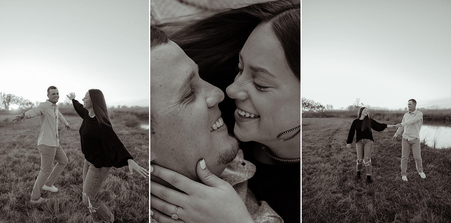 To enhance that natural flow during sessions, I love using prompts instead of stiff posing because couples can make it their own and have fun with it. These two did just that, and the results are pure magic! Whether they were chasing each other through the field, dancing together, wrapped up in a warm hug, or laughing with JuJu in their arms, every moment felt authentic.